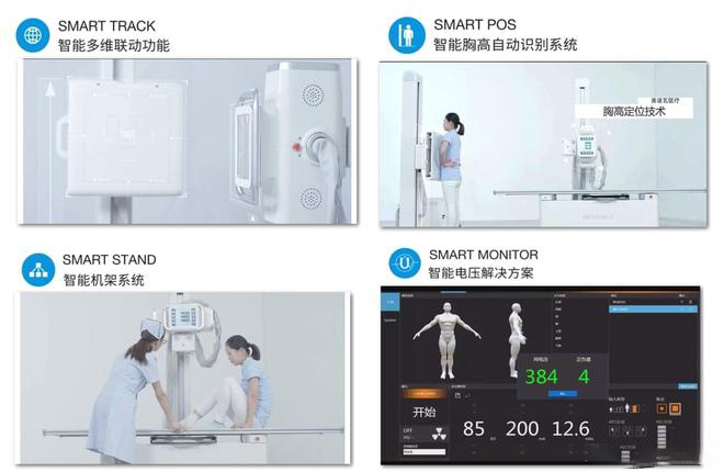 美诺瓦Staray双立柱智能DR在2021年被中国医学装备协会评为“优秀国产医疗设备”搭载了非晶硅碘化铯超清平板探测器、分体式大热容X线球管、自主研发50KW大功率高压发生器以及Staray图像算法工作站,在患者登记、摄影条件选择、患者摆位、图形采集处理乃至PACS网络传输等整个检查流程上均采用了新流程技术,操作简单,特别是智能机架控制、智能多维联动功能、智能防碰撞、智能胸高识别等功能,一体化电动控制摆位,让医生操作更加便捷,有效解决了普放常规检查项目患者流通量大,高峰时间拥挤的问题。