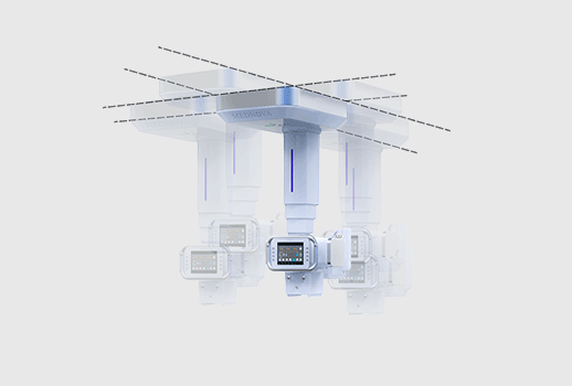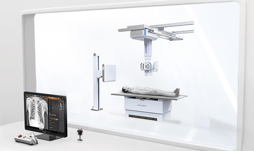 美诺瓦高端智能Staray 8000Super(旗舰款)悬吊DR采用电动井字型天轨、智能机架系统、升降检查床及胸片架的组合,在X线球管上具有更高的热容量设计,全数字化成像系统且有效控制射线剂量,可以覆盖颅骨、脊椎、胸腔、肺部、腹部以及四肢的曝光摄影。